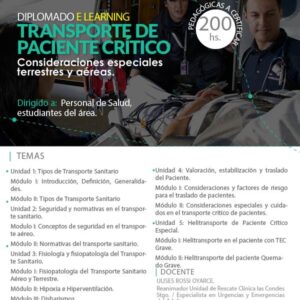 Diplomado E-Learning Transporte de Paciente Crítico en Unidades de Terapia Intensiva, Terrestres y Aéreos