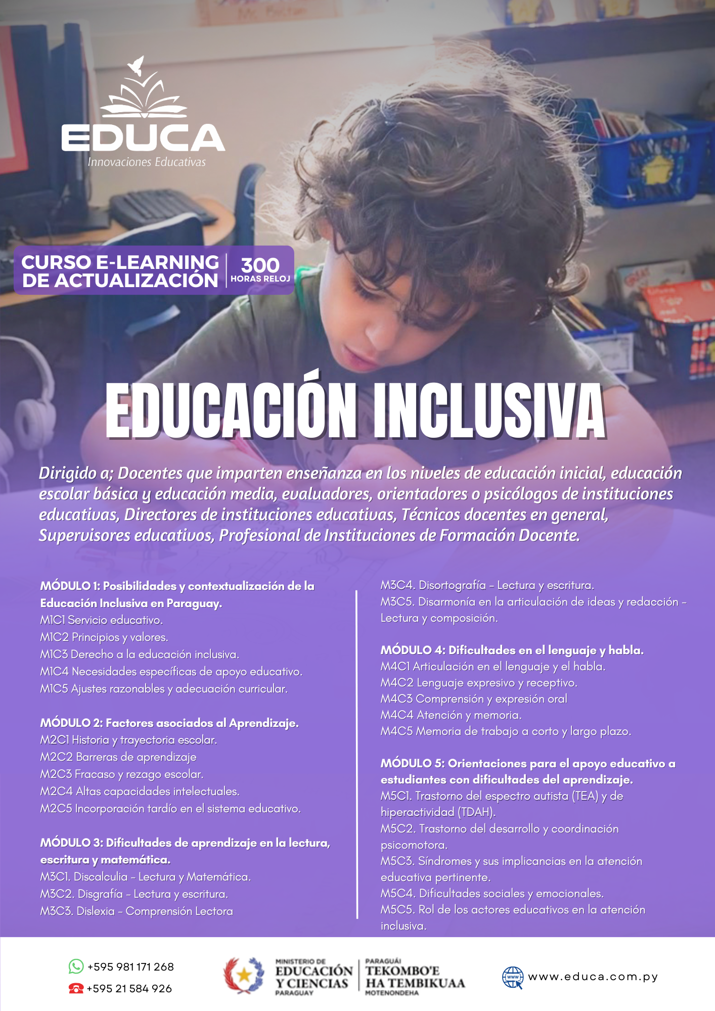 El Curso de Educación Inclusiva está diseñado para fortalecer las competencias de docentes, directivos, estudiantes de formación docente y otros profesionales interesados en promover una educación de calidad para todos. Este curso ofrece herramientas prácticas y actualizadas para garantizar el acceso, la participación y el aprendizaje de estudiantes con diversas necesidades, contextos culturales y estilos de aprendizaje.