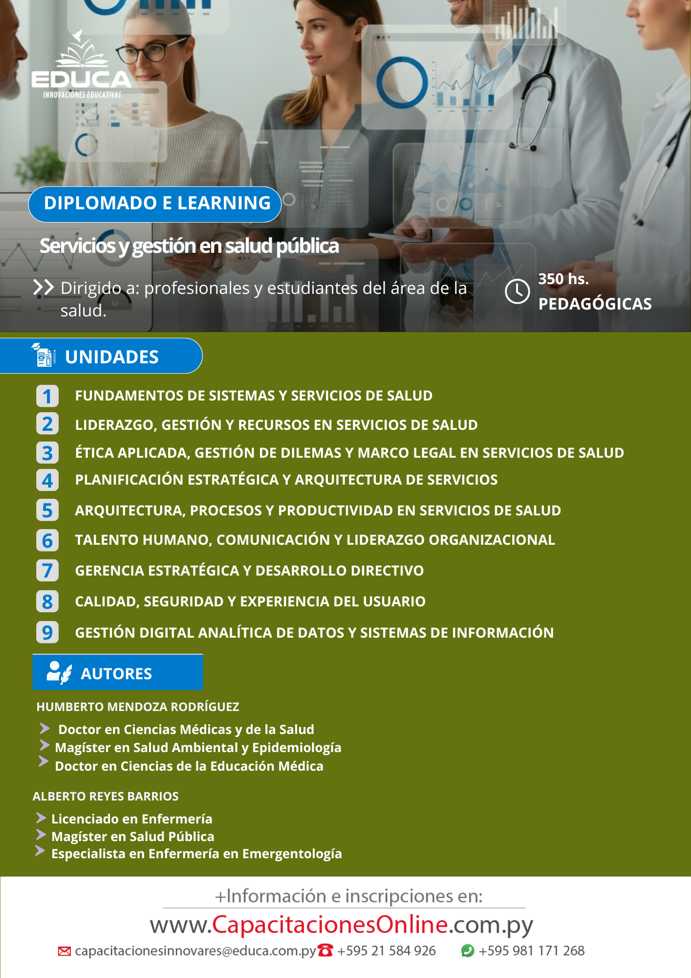 Dirigido a: Profesionales y estudiantes del área de la salud, gestores sanitarios, directivos, coordinadores de servicios de salud y personal interesado en fortalecer competencias en administración y gestión sanitaria.